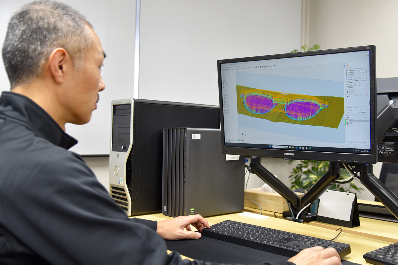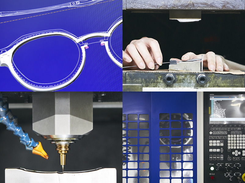 しっかりとした設計は、プレス加工や切削加工の可能性をより引き上げます。従来は溶接していたパーツを、破損の少ない一体化したパーツへと進化させた技術も、精度の高い設計力によるもの。眼鏡のクオリティを次のレベルへと進化させてきました。