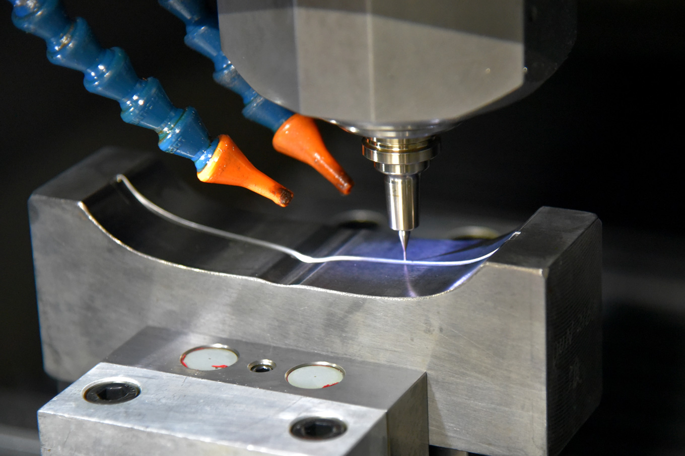 マックスが造るパーツはすべて、冷間鍛造によって産み出されてきました。チタンパーツの強度を高める、 ベータチタンのバネ性を出すなど、高品質な眼鏡フレーム製造には適した技術です。しかし硬化中の熱処理や、金型に加わる負荷の大きさなど難易度も高く、耐久性を考慮した金型設計が重要となります。