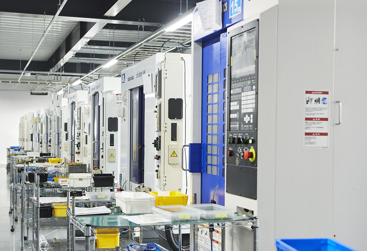 マシニングは、曲面加工や穴開けなど、多種類の加工を連続で行える技術。複雑で立体的な製品を産み出すことができるため、現在のマックスを支える大きな力となりました。新社屋では、導入台数も35台にまで増えるまで成長しています。